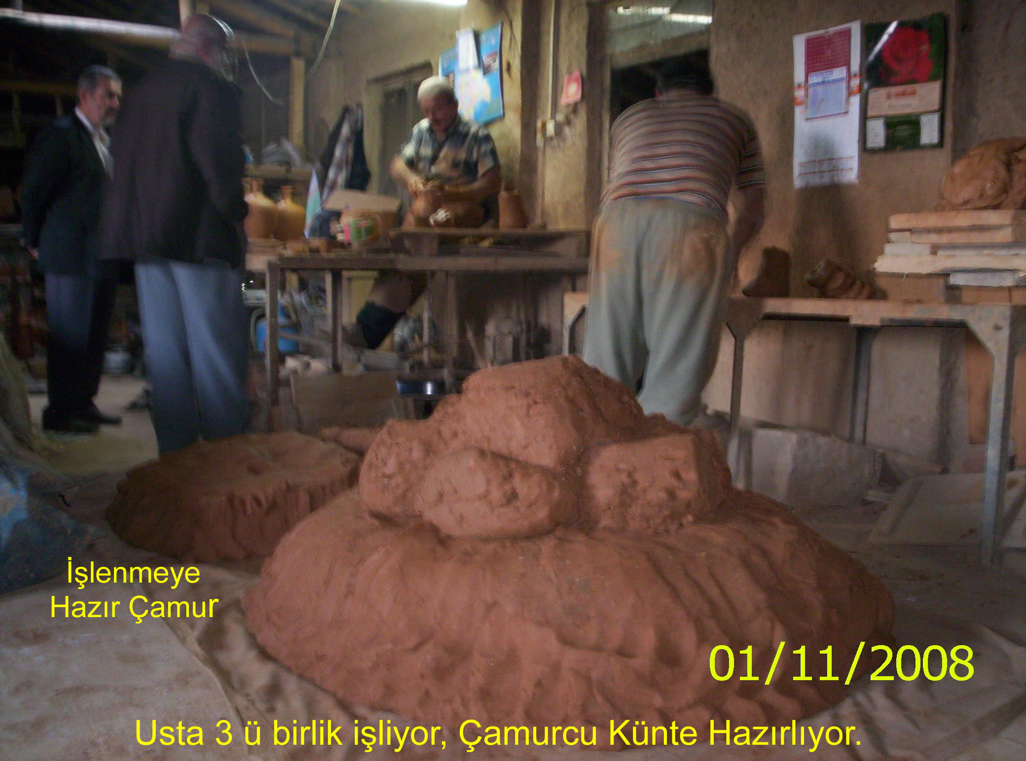 Çamurcu (çamuru yoğurup işlenecek hale getiren ve ustaya bunu sunan kişi ) Çamur çukuruna girerek ıslanan toprak ve mil i bir kenarından başlayıp karıştırarak ve çiğneyerek o gün kullanılacak kadar miktarı çamur çukurunun dışına çıkarır.