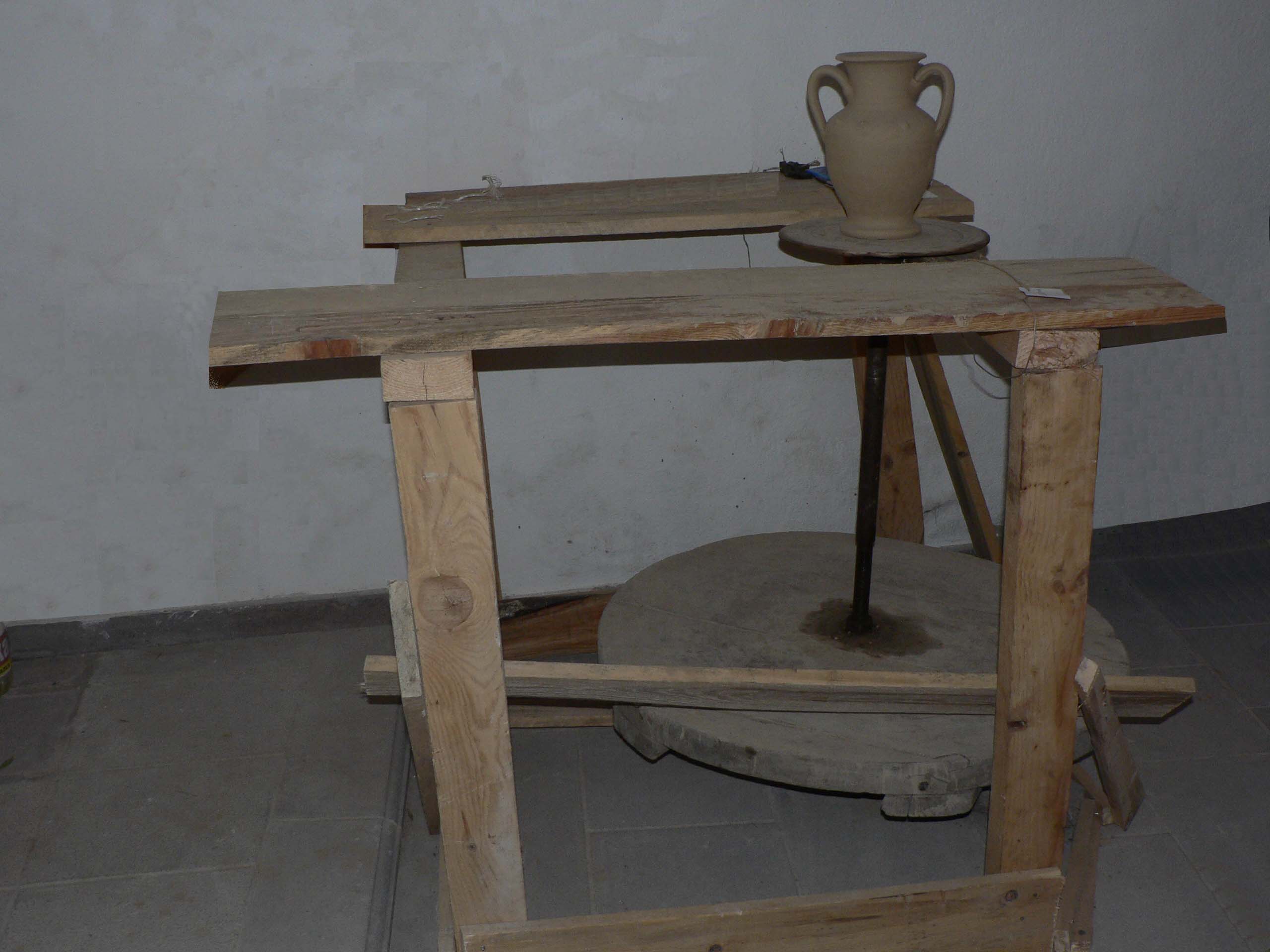 | Tezğah | Toprak işçiliğinde kullanılan ayakla çevrilenbir platform, bir mil ve buna bağlı başlıktan oluşan bir düzenek |